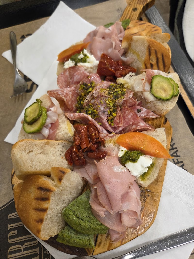 We were looking for a quick bite to eat while visiting Asti to tour the Cattedrale di Santa Maria Assunta and the Collegiate di San Secondo. Unfortunately, we arrived during lunch time when most of the businesses in the town are closed. Luckily, we found La Fàrcia - a great sandwich spot. We the picked the type of sandwich we wanted from an extensive menu and the type of bread. The friendly counter-person took our order and we sat down and waited for our meal (you can also choose take-away). The sandwich arrived warm - like a panini - in a small brown lunch bag, labeled with the name of the sandwich. The sandwiches were molto delizioso and the price was reasonable. Check it out.