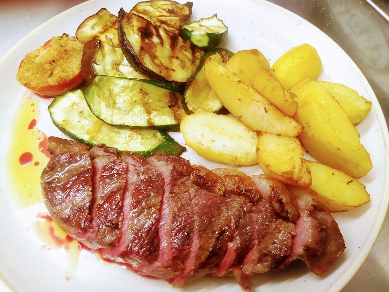 We had a rib eye and the cacio e Pepe , side salad and grilled veggies. Very good food and portions. Service was friendly and they even have an English menu. It’s great since this restaurant is outside the city center.