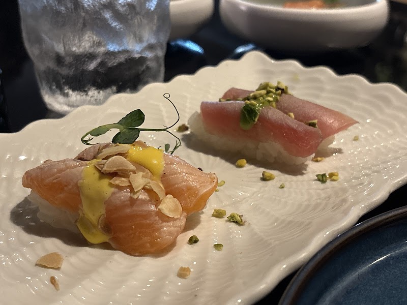 Food was fresh and some interesting pairings. Food was beautifully presented, albeit one of the items did not look like it's photograph. I was a bit disappointed by the small Sake menu, but managed to find a bottle. We sat on the Patio at lunch; there was one other table and 2 tables inside. I enjoyed the place, but it was quite off-putting to have 3 waiters blocking the entrance while talking and laughing (our table was close by). A level of service not on par with the sophistication of the dish additionally I expected, when presented with a dish to have to server both explain what we are eating and if we have any questions. Basically, most of our dishes were dropped off and the waiter went back to talking with his friends.