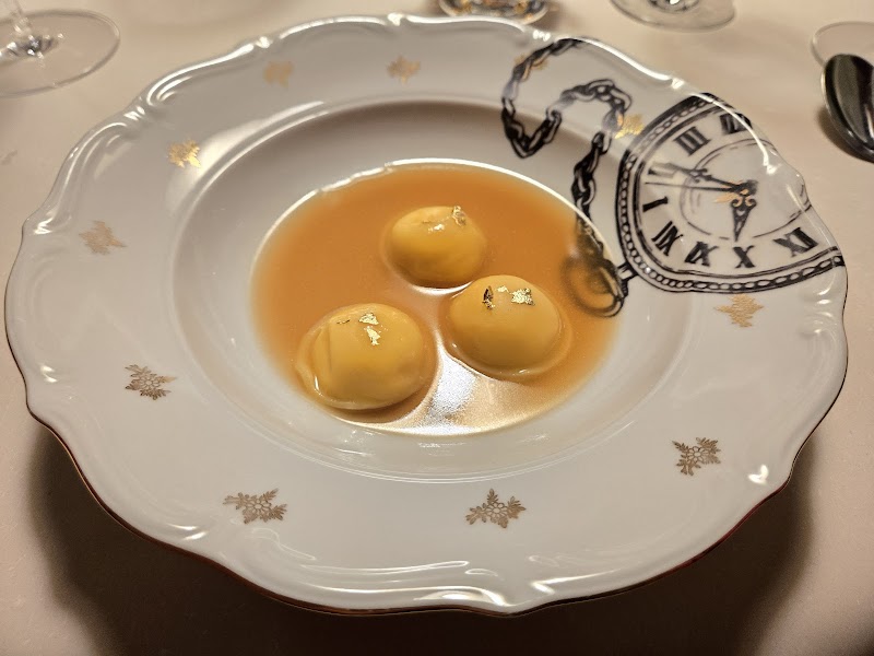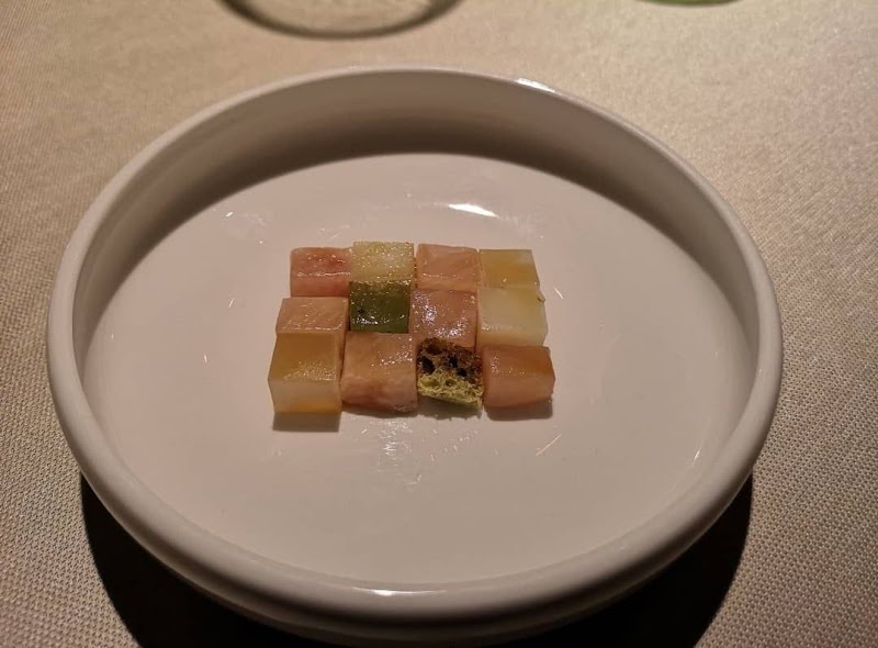 "Reflessioni" is a menu of wonderful contrasts. The chef's goal is to take familiar and unfamiliar ingredients and bring them together to create totally new flavors. From what we saw, most diners went for their traditional menu instead, so it was cool to see what everyone was getting at different tables. The space is really neatly designed so that while you could see some nearby diners and tables entirely, most were partially obscured by the divisions down the length of the room, which created a fun mystery atmosphere. The staff clearly love their jobs, and were very engaged in the dishes and the pairings, but not overly serious or stiff. We laughed with them and chatted, which was a really nice experience. We also got a blind pairing of wine and non-alcoholic drinks, which also enhanced the fun. The coolest part for me was really enjoying some ingredients I don't particularly like (such as seaweed) because of how they were paired (in this case, with strawberry). We left feeling very happy and not too full after our four-hour dinner, but were rather very satisfied; I think this is a must-go for adventurous eaters!